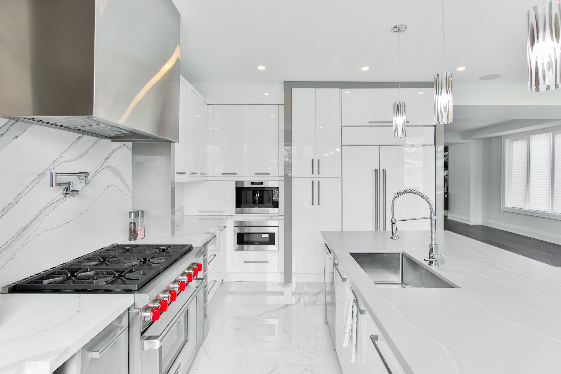 - I en nybygget bolig med store, åbne rum kan et moderne køkken understrege arkitekturens rene linjer.